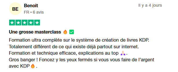 Difficile de donner une réponse universelle, car ça dépend de ton implication, des niches choisies et de ta régularité. Cela dit, les premières ventes peuvent arriver très vite : certains ont eu leurs premiers résultats dès la 1re semaine, surtout en utilisant les pubs Amazon (optionnelle, mais efficace).